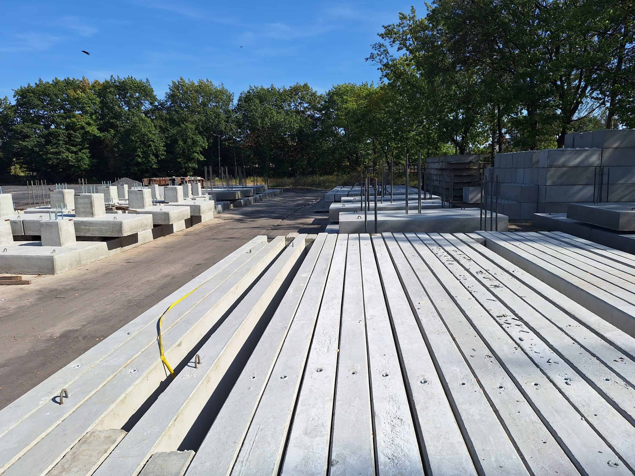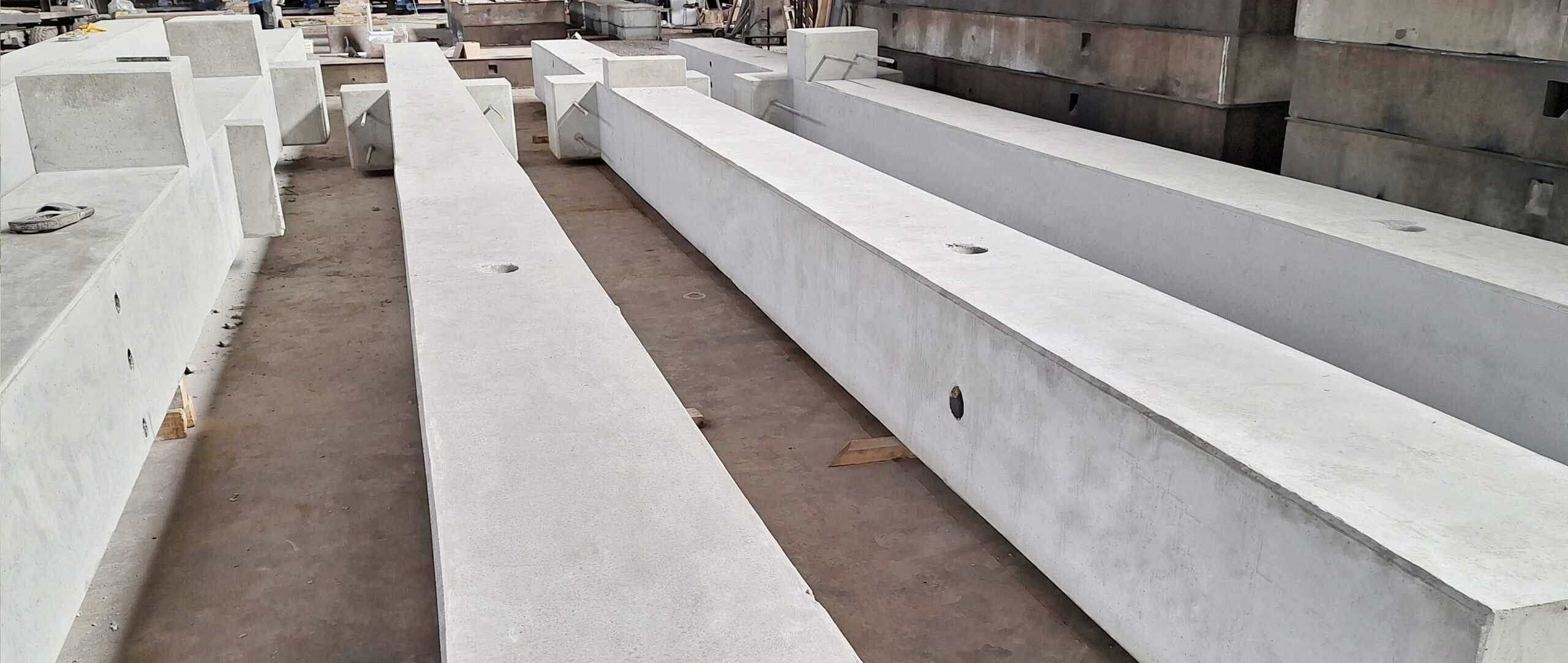 Głównie zajmujemy się produkcją prefabrykatów betonowych używanych w budownictwie przemysłowym czyli: